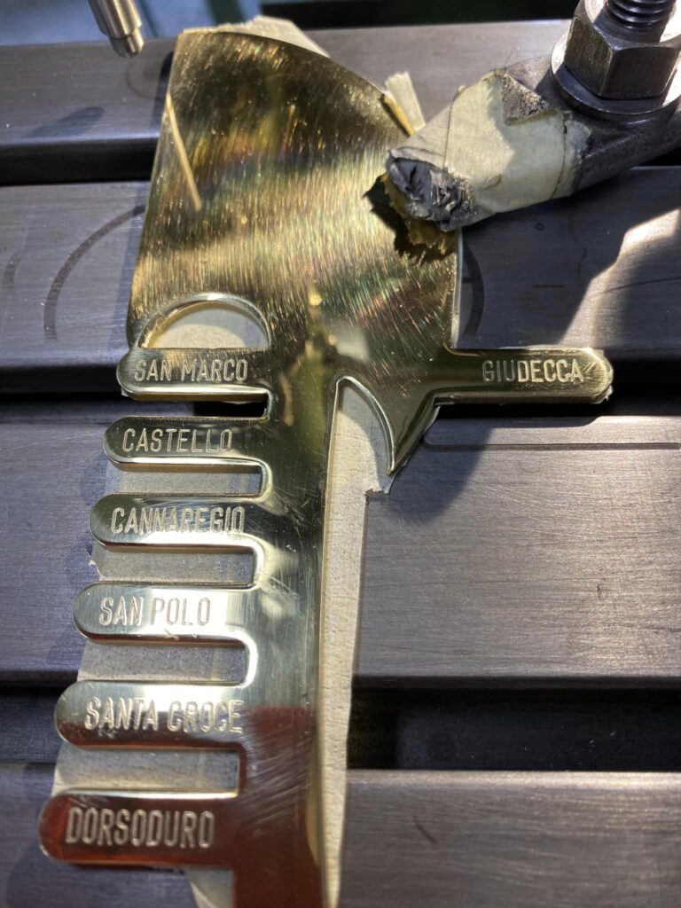 Il ferro della gondola, detto anche ferro di prua. In veneziano Dolfin.